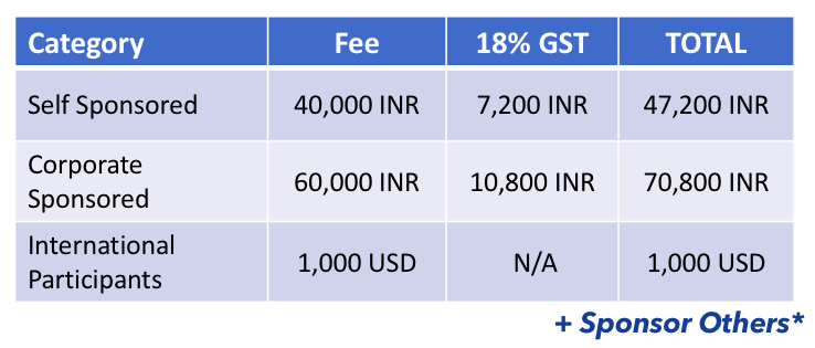 * Since this program is a low cost offering from our side, as a regular participant, you can offer to pay / sponsor other deserving participant(s). We wish you make this call and pay after attending the program by seeing the value this gives you.